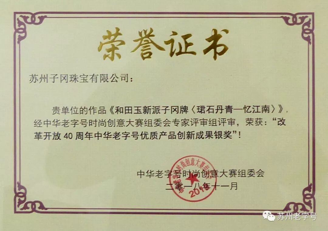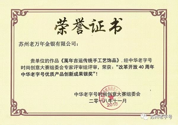 改革开放40周年中华老字号传统手工技艺作品 银奖 1件;