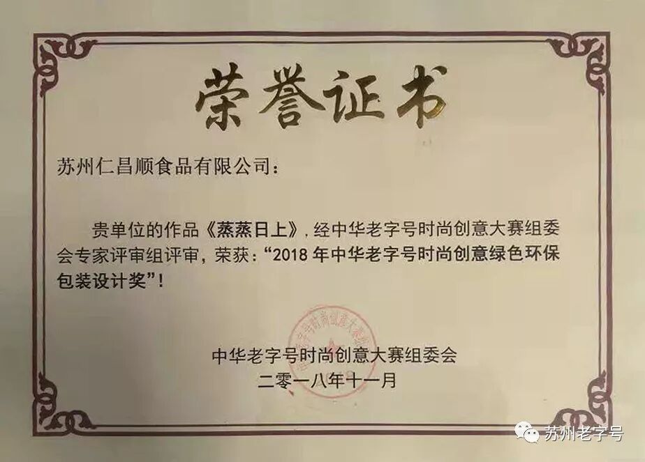 2018年中华老字号时尚创意绿色环保包装设计奖 1件;